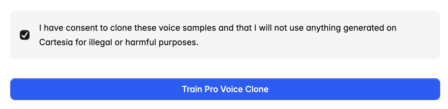 Accept the disclaimer and click the Train Pro Voice Clone