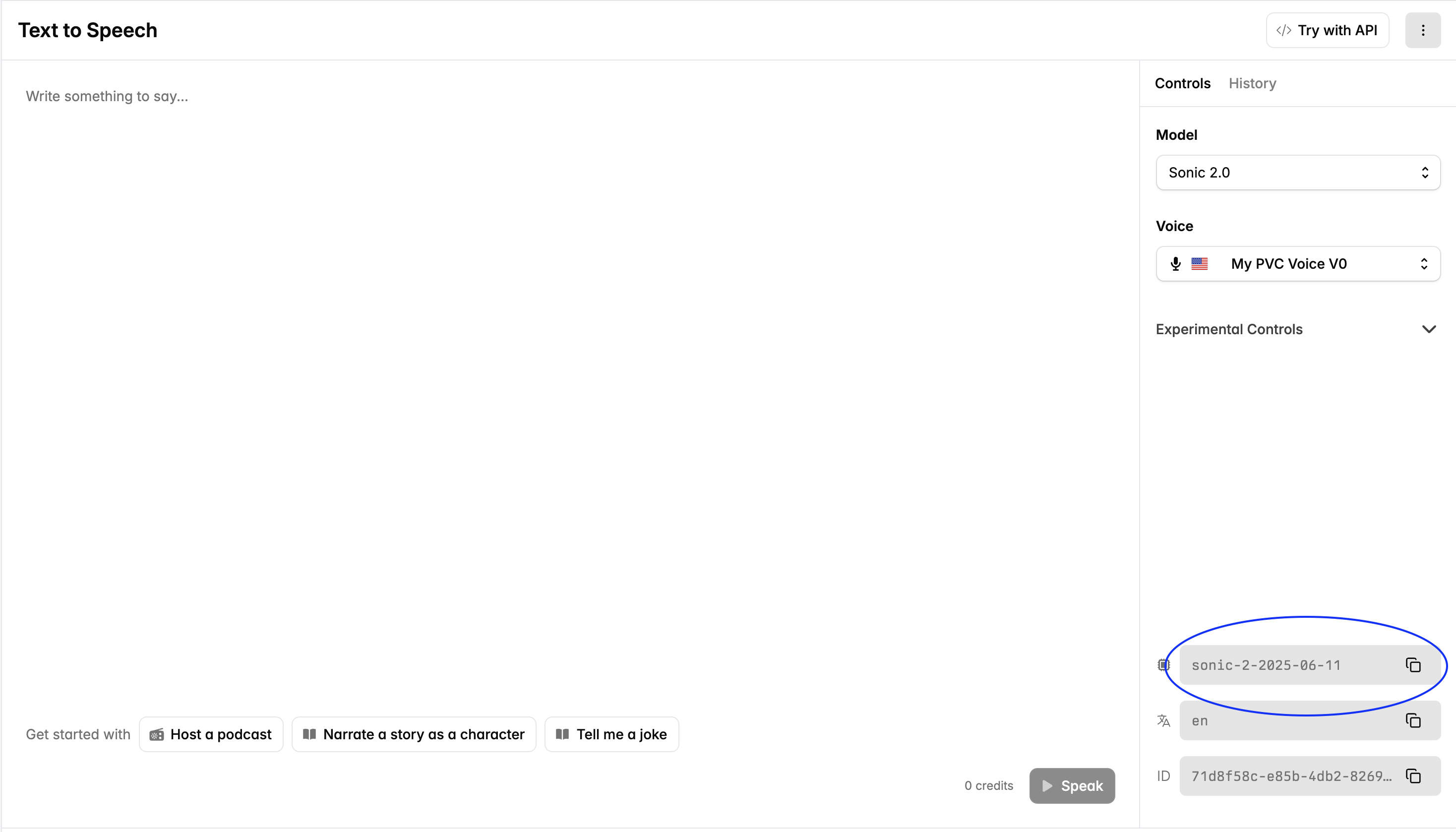 | Instant Voice Clone | 10 seconds | Free | 1 credit per character |