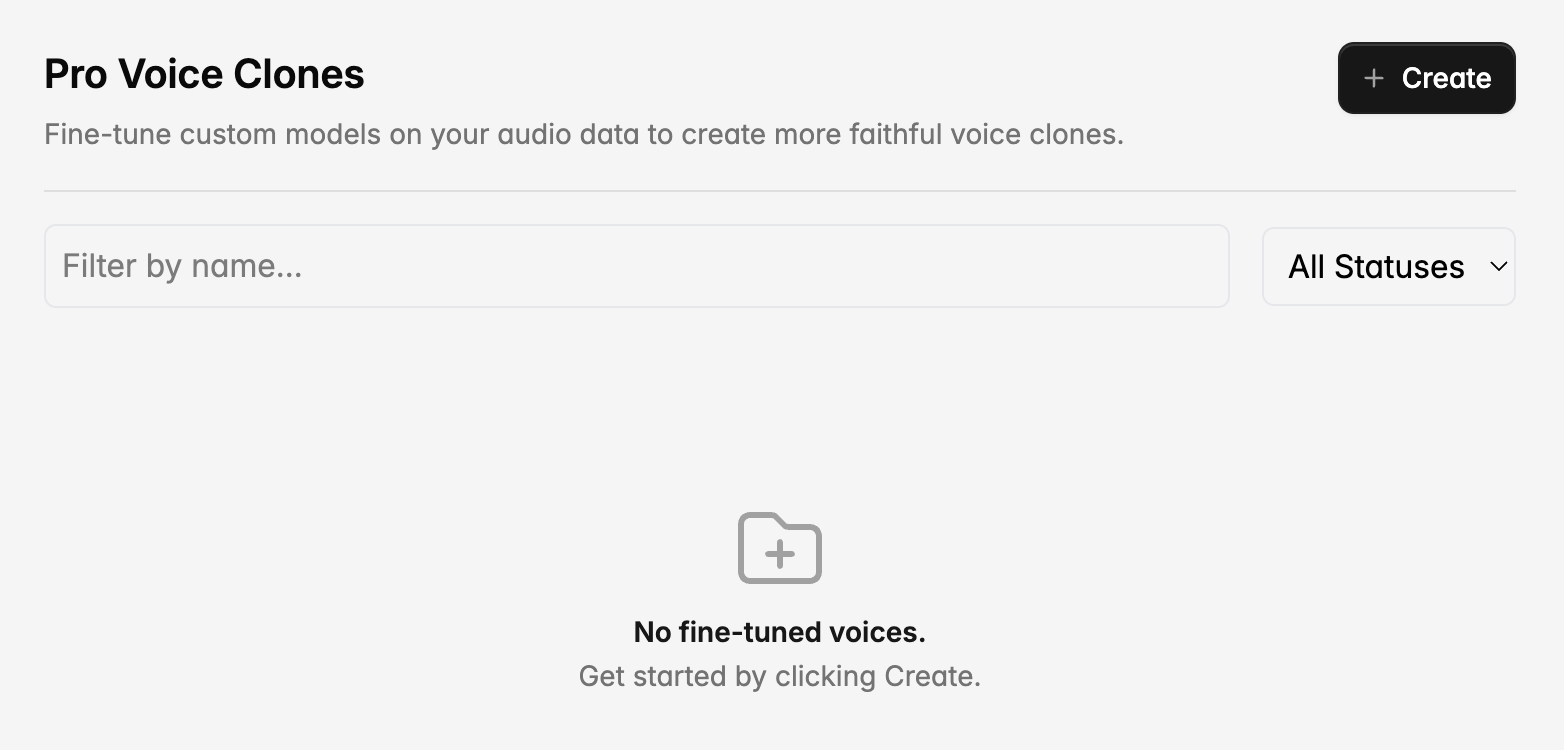 We recommend uploading a minimum of 30 minutes of audio, but around 2 hours of audio is ideal. The Pro Voice Clone will closely match your uploaded data, so make sure it sounds the way you like in terms of background noise, loudness, and speech quality.